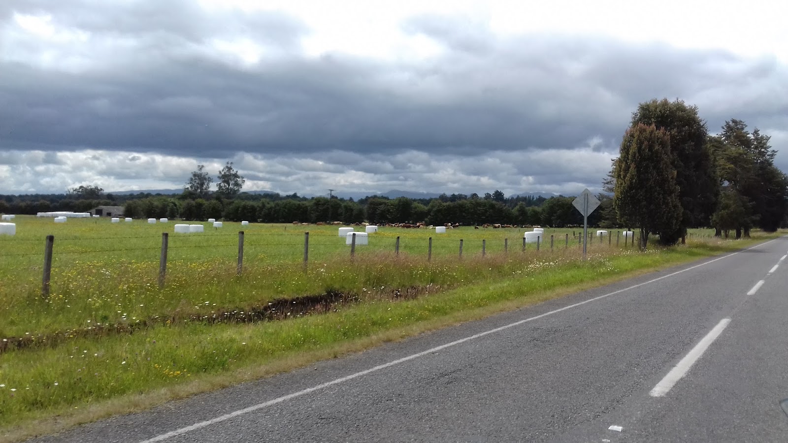 Por aqui os rolos de feno são ensacados...